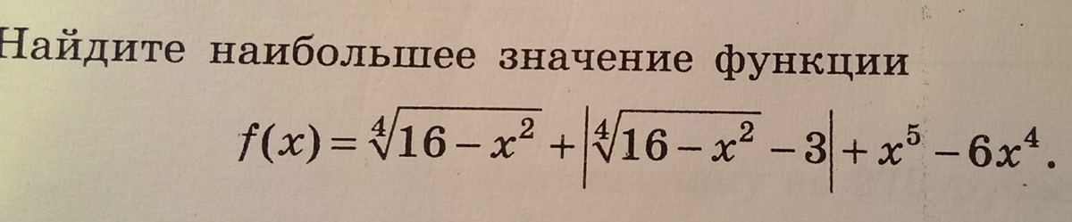 y = (16-x^2)^1/4+| (16-x^2)^1/4 - 3 |+x^5-6x^4 =