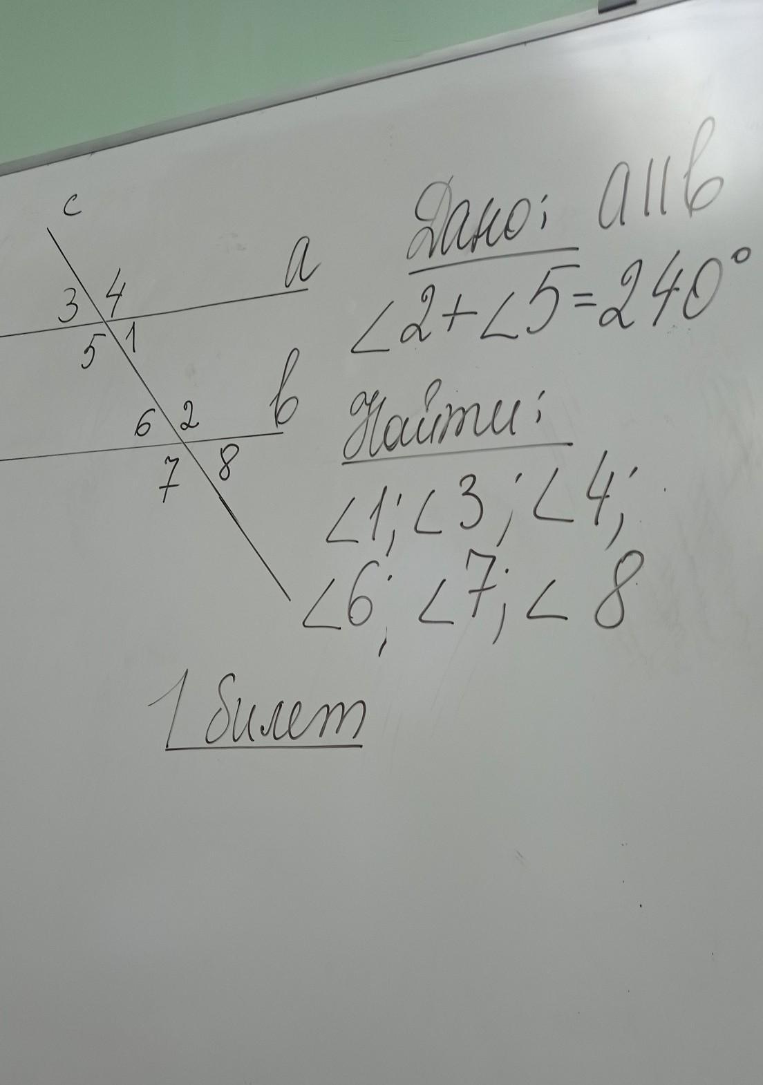 ∠2=∠7=120° и ∠4=∠5=120° и ∠1=∠3=60° - как вертикальные углы