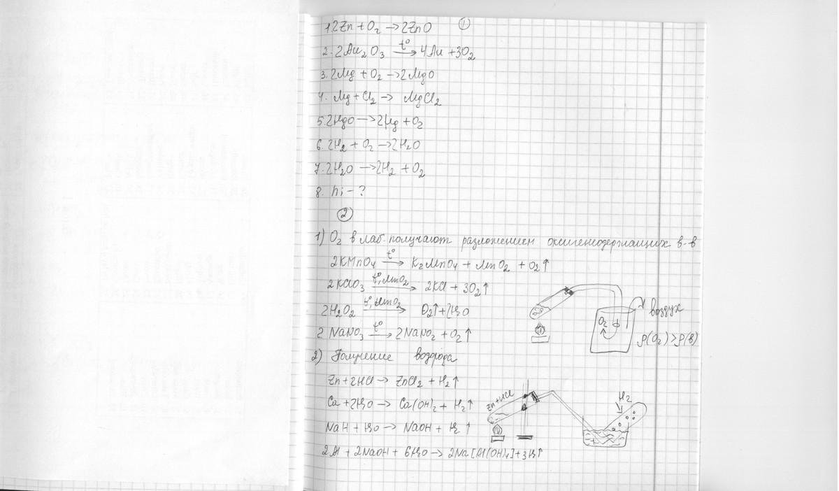 1. Как получить O2 и H2 в школьной лаборатории? (+ записать уравнения) .