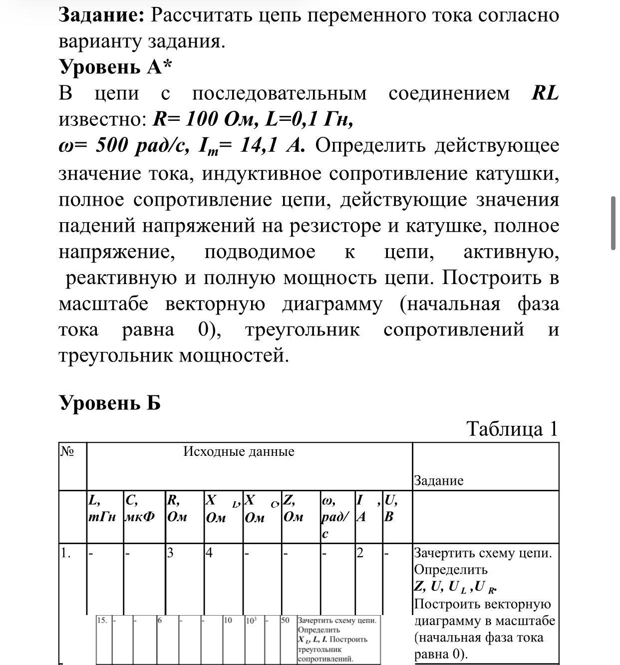 В цепи с последовательным соединением RL известно: R= 100 Ом, L=0,1 Гн,