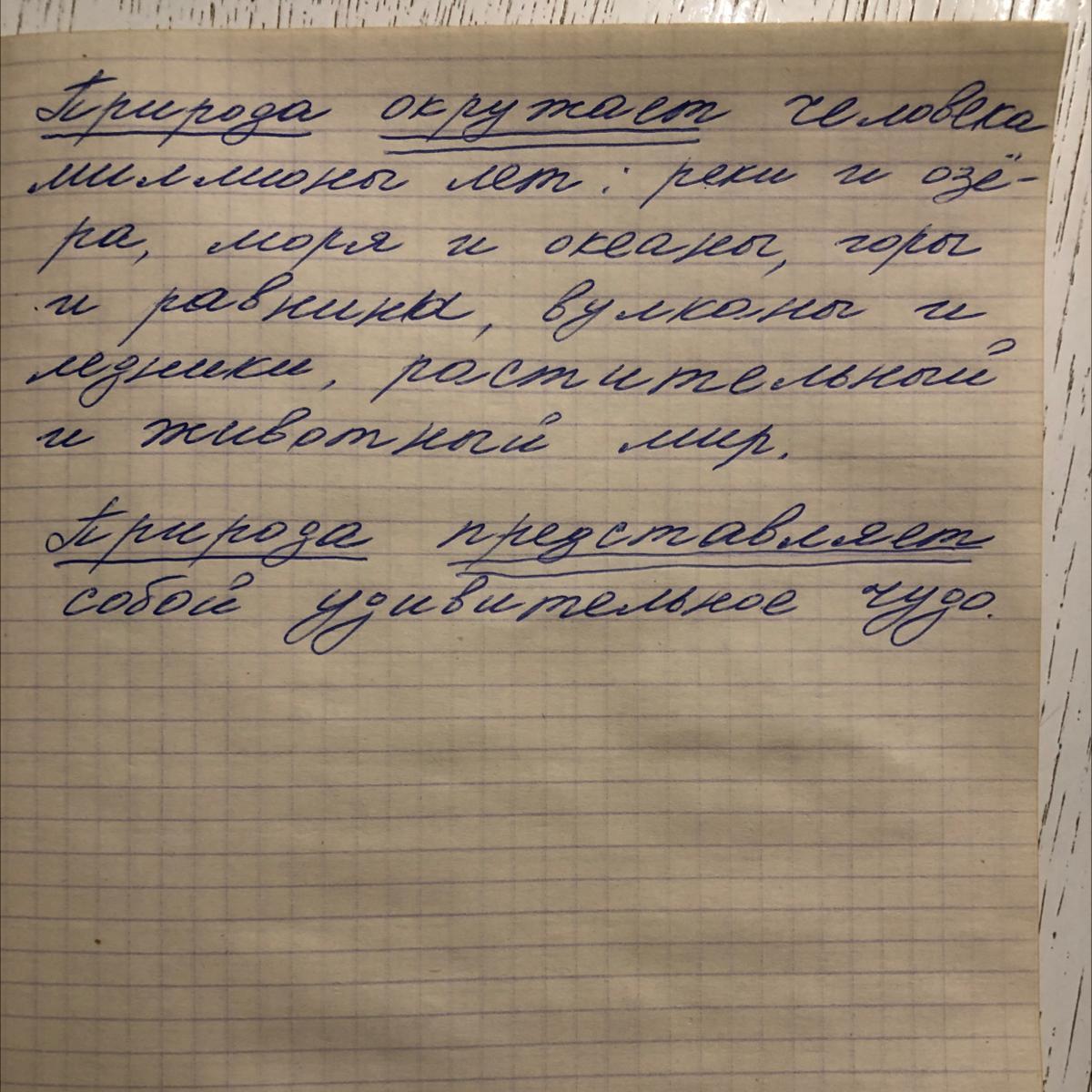 Задание по русскому языку на завтра:Составить 2 предложения о природе,подчеркнуть в них подлежащее и сказуемое.