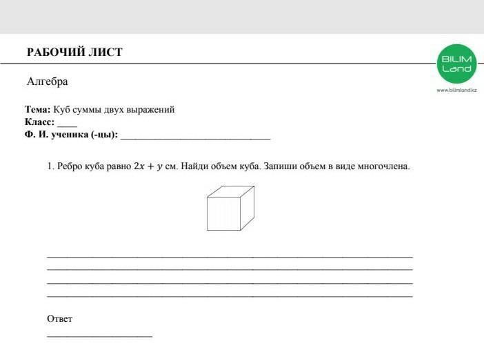 V=(2x+y)³=8x³+3*(2x)²y+3*2xy²+y³=8x³+6x²y+6xy²+y³