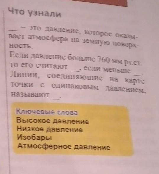 атмосферное давление это давление которое оказывает атмосфера на земной поверхности Если давление больше 760 мм рт. ст то его считают высоким давлением Если меньше то низким давлением линии соединяющие на карте точки с одинаковым давлением называются изобары