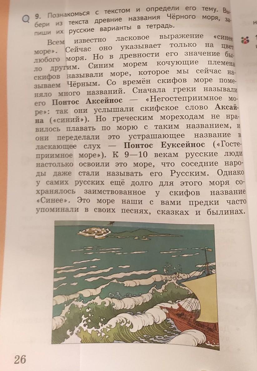 Тема текста состоит в том, как в зависимости со временем менялось название Чёрного моря