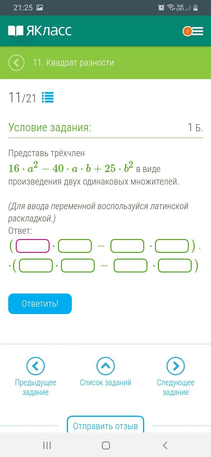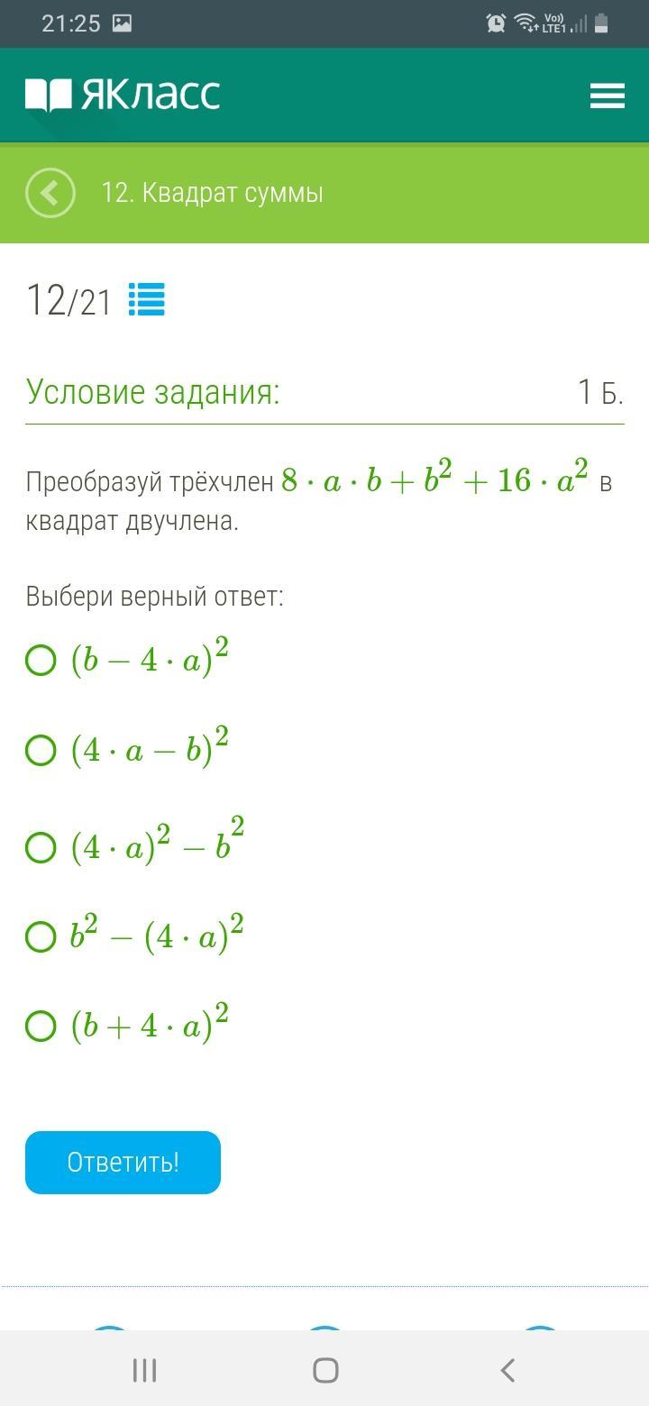 2)16a^2+2*4 a b +b^2=(4a + b)^2 Ответ 5