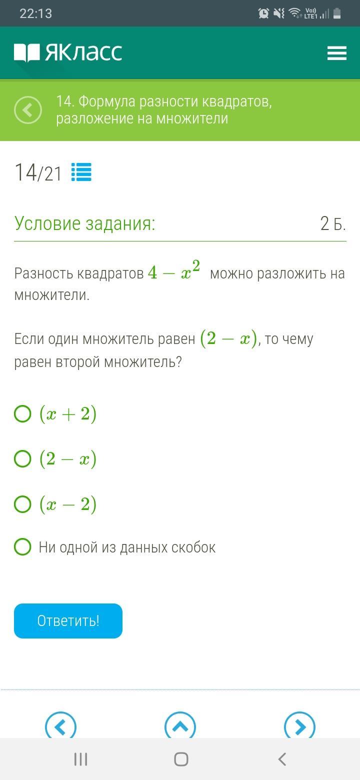 4) 4-x^2=(2-x)(2+x). Ответ 1