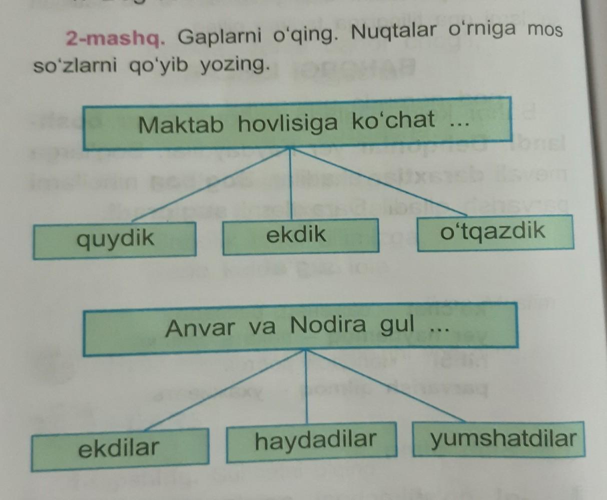 1 - Maktab hovlisiga koʻchat oʻtqazdik.
