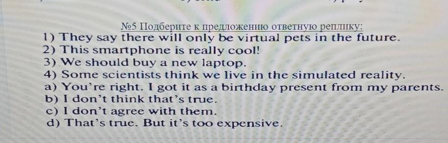 3) Надо купить новый ноутбук. 4) Некоторые ученые думают, что мы живем в симулированной реальности