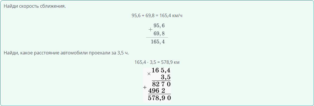 95,6 + 69,8 = 165,4 (км/ч) - скорость сближения.