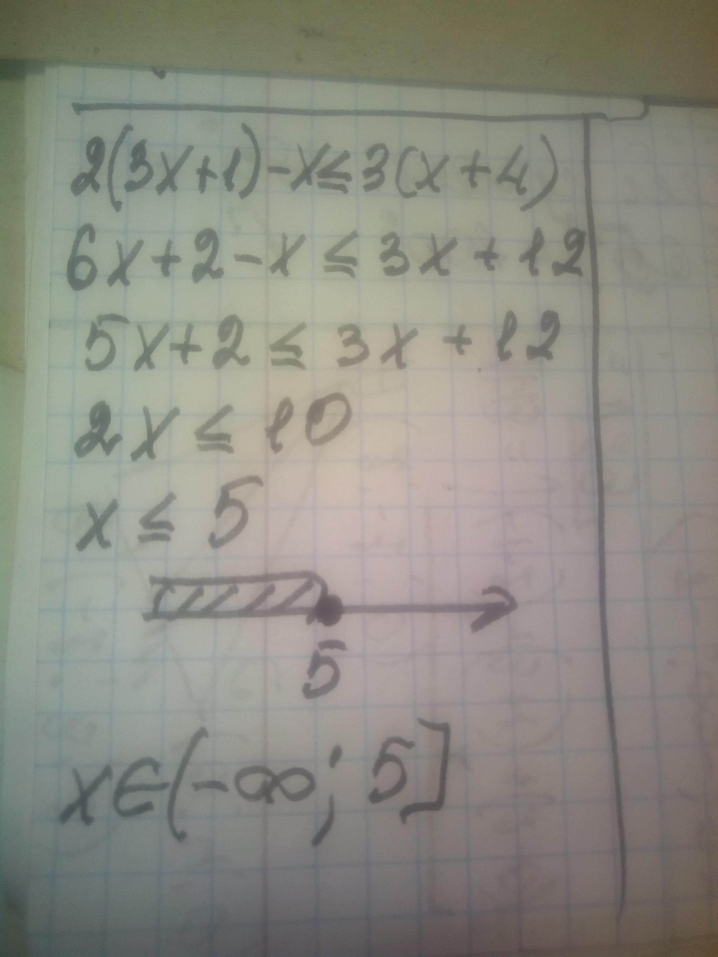 7) 2(3х+1)- х≤ 3(х+4)
