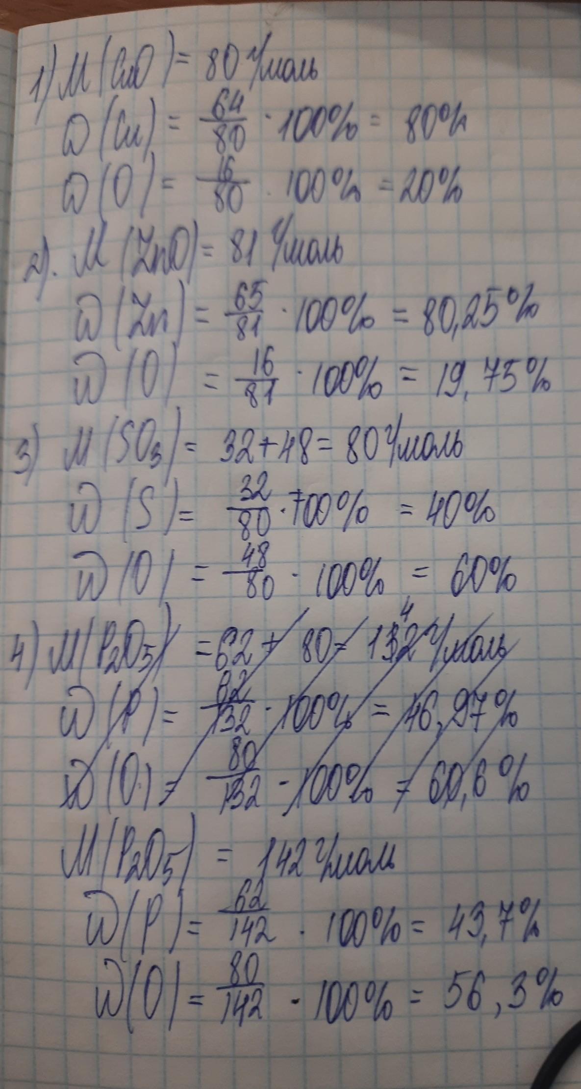 Рассчитайте массовые доли в процентах каждого элемента в следующих соединениях: