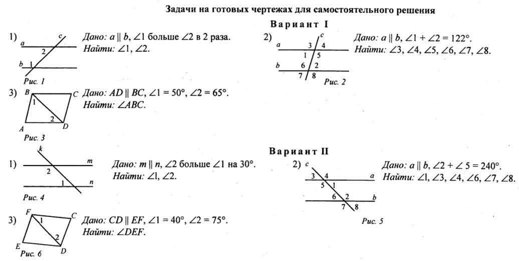 1. /_1=х, сумма внутренних односторонних углов =180.