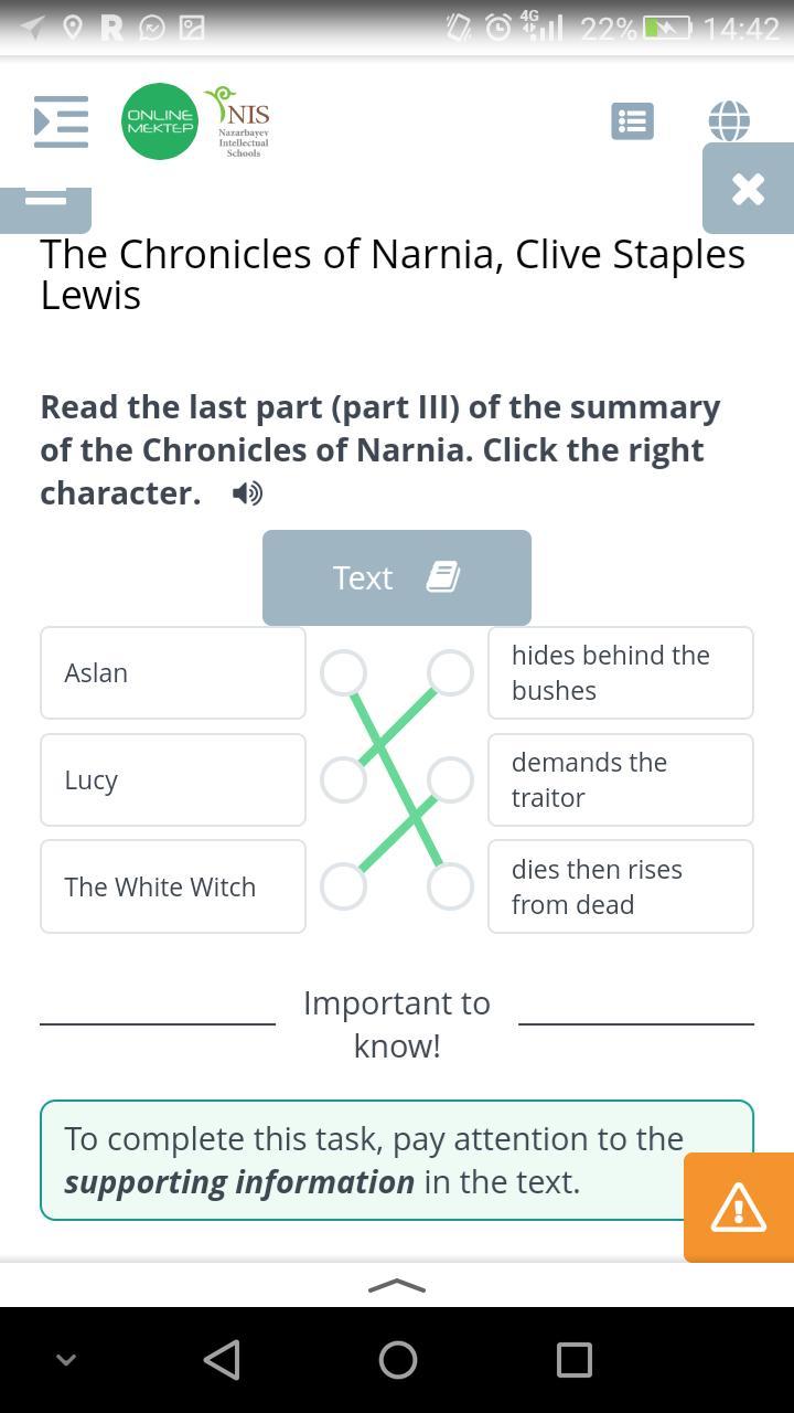Read the last part (part III) of the summary of the Chronicles of Narnia. Click the right character.