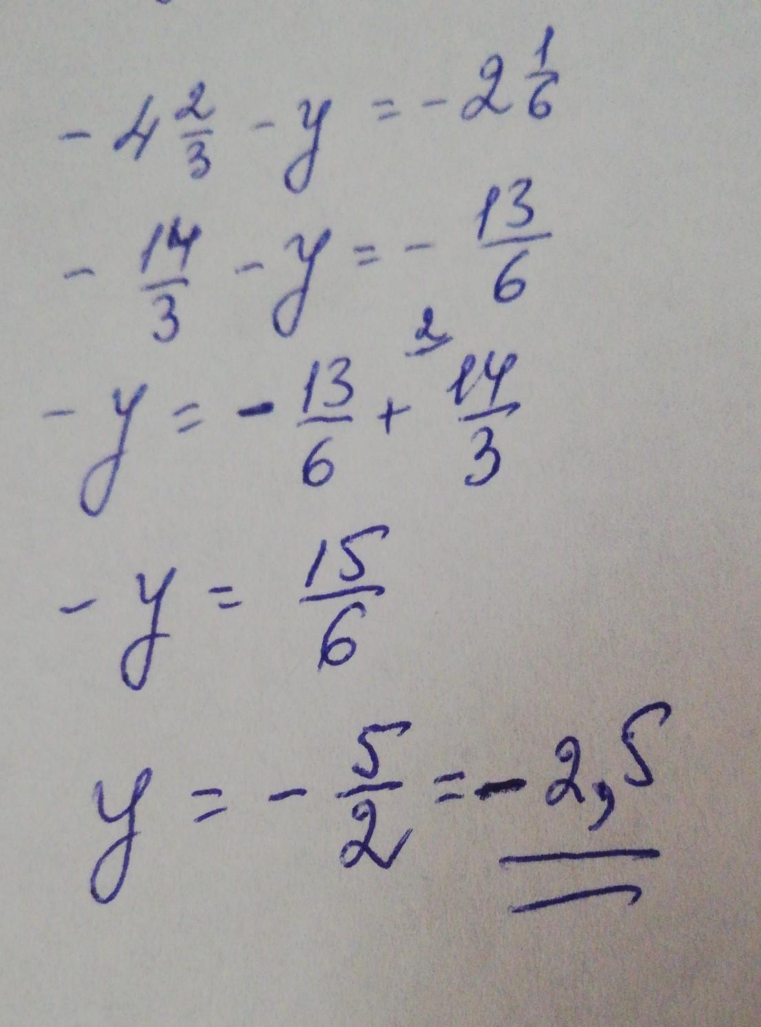 -4 ⅔-y=-2⅙