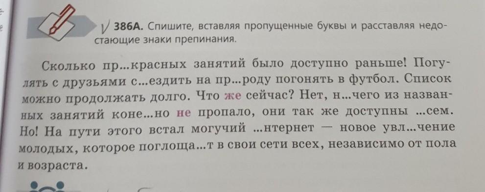 386 А. Спишите , вставляя пропущенные буквы и расставляя недостающие знаки препинания.