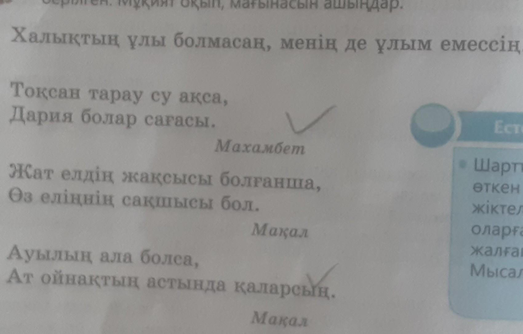 2-тапсырма.Төменде бірлік пен ынтымақтастық , береке-бітім туралы үзінділер берілген .Мұқият оқып мағынасын ашындар.