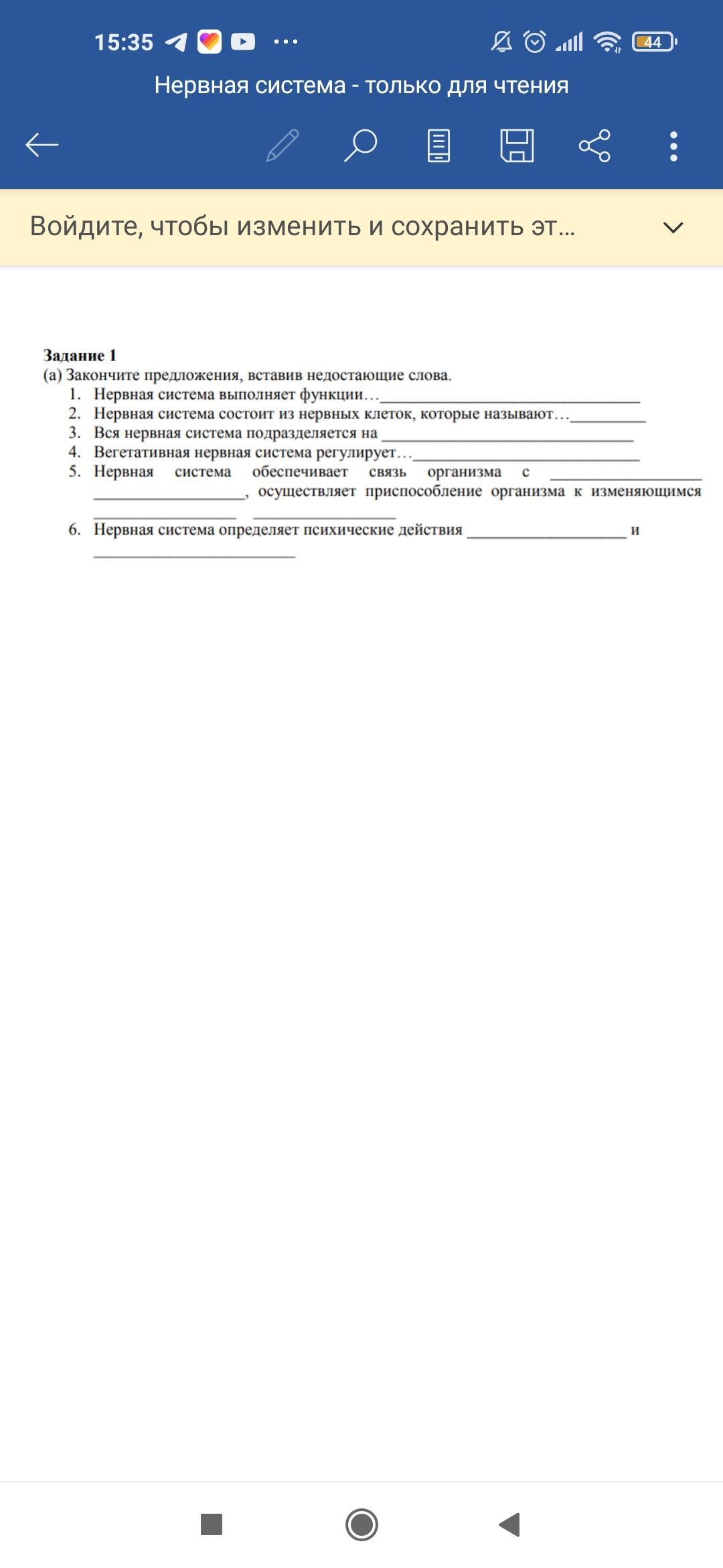 5.Нервная система обеспечивает связь организма с __________________, осуществляет приспособление организма к изменяющимся________________