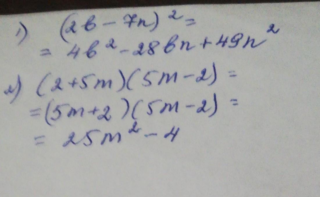 (2b - 7n)² = (2b)² - 2 * 2b * 7n + (7n)² = 4b² - 28bn + 49n²