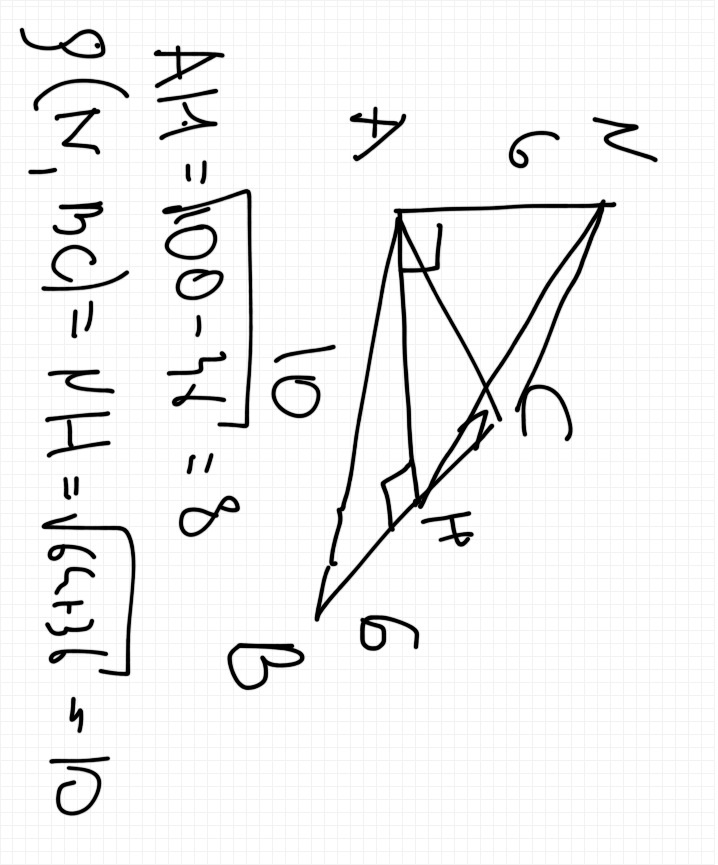 На плоскость треугольника со сторонами AB=AC=1 дм, BC=12 см .проведен перпендикуляр AN=6 см. Найти расстояние от N до прямой BC.