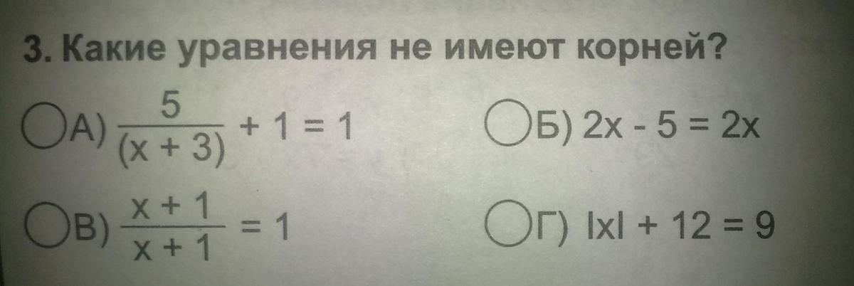 Какие уравнения не имеют корней.Файл прикреплен.И еще пож-та с объяснением почему именно этот ответ
