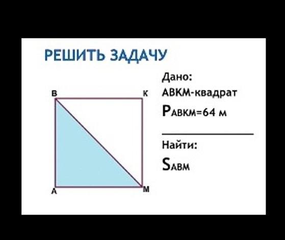 АВ=Р(АВКМ)/4=64/4=16 м сторона квадрата.