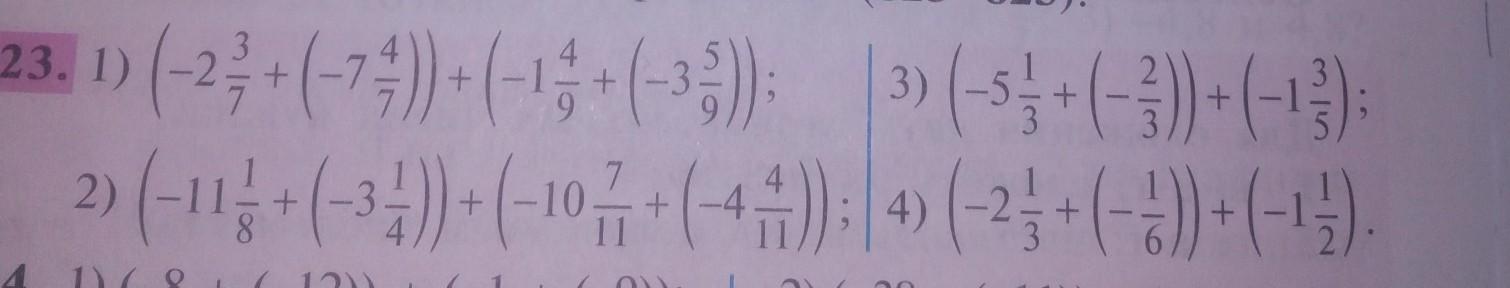 (-2 1/3 +(-1/6))+(-1 1/2))=-2 2/6 -1/6 -1 1/2=-2 3/6 -1 1/2=-2 1/2 -1 1/2=-3 2/2=-4