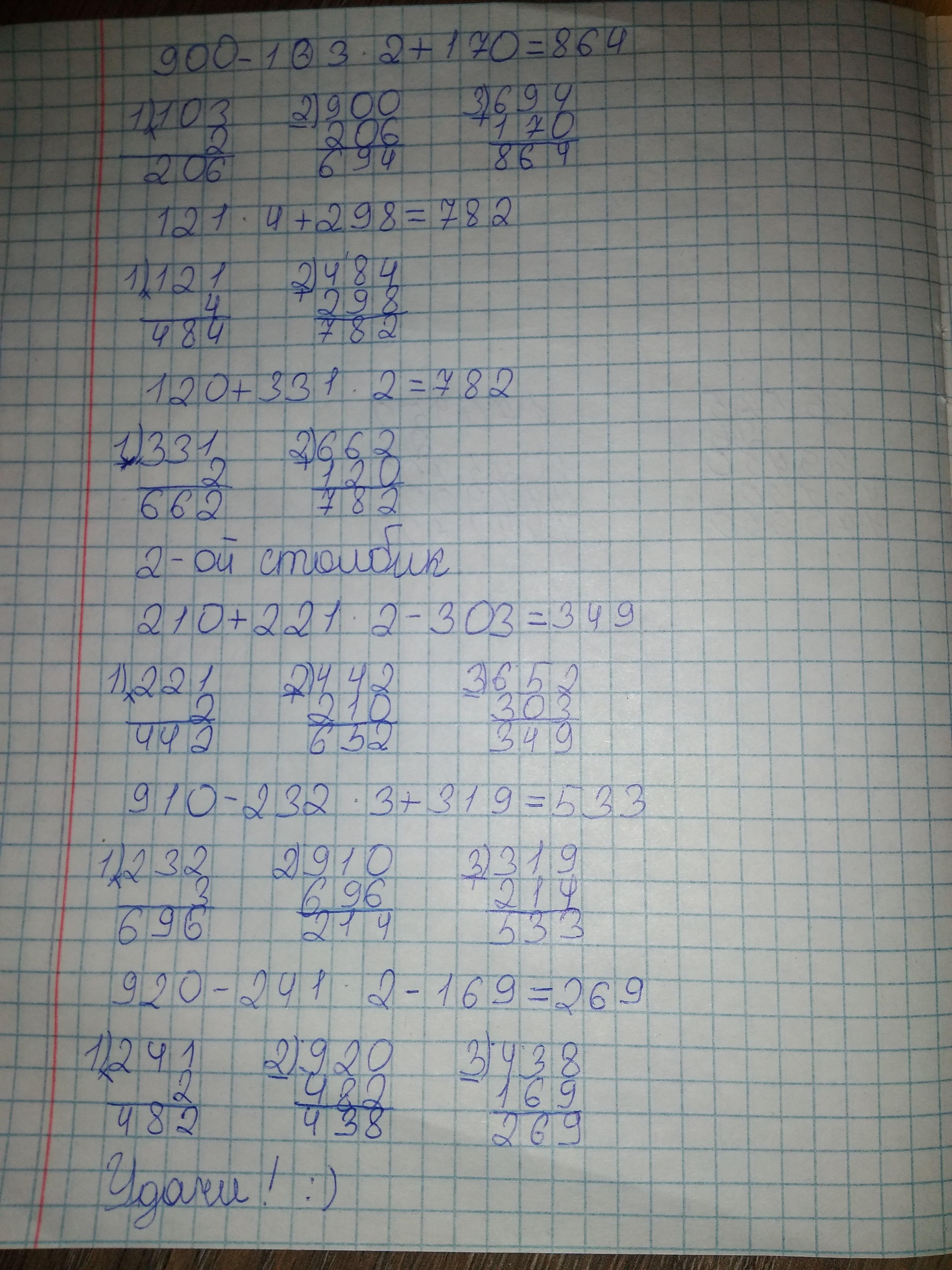 Определи порядок действий. Вычисли,записывая действия СТОЛБИКОМ.
