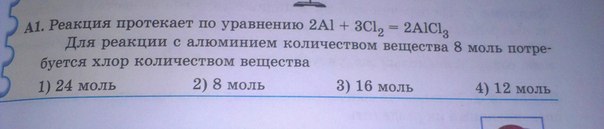 из уравнения мы видим,что перед алюминием стоит 2,а перед хлором 3,нам дано,что алюминия 8 моль,составляем уравнение