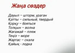Мен дауылдан қорқамын. Өйткені дауыл өте қатты жəне өте желді . Ол шан алып келеді. Мен басында оны жай жел деп ойландым бірақта ол жақындап өте қатты болып шан датып кетті.