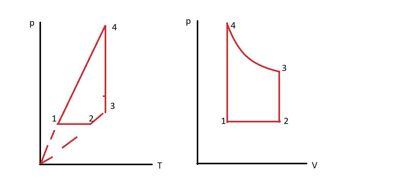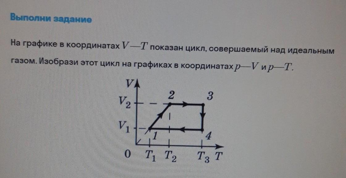р-V. Изобрази переход газа из состояния 1 в состояние 4 на графиках в