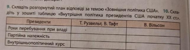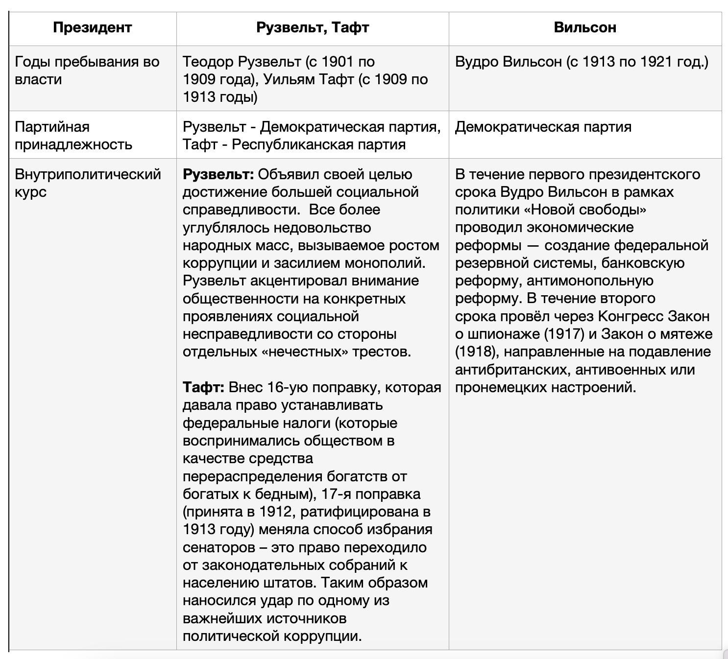 Складіть таблицю "Внутрішня політика президентів США початку XX ст."