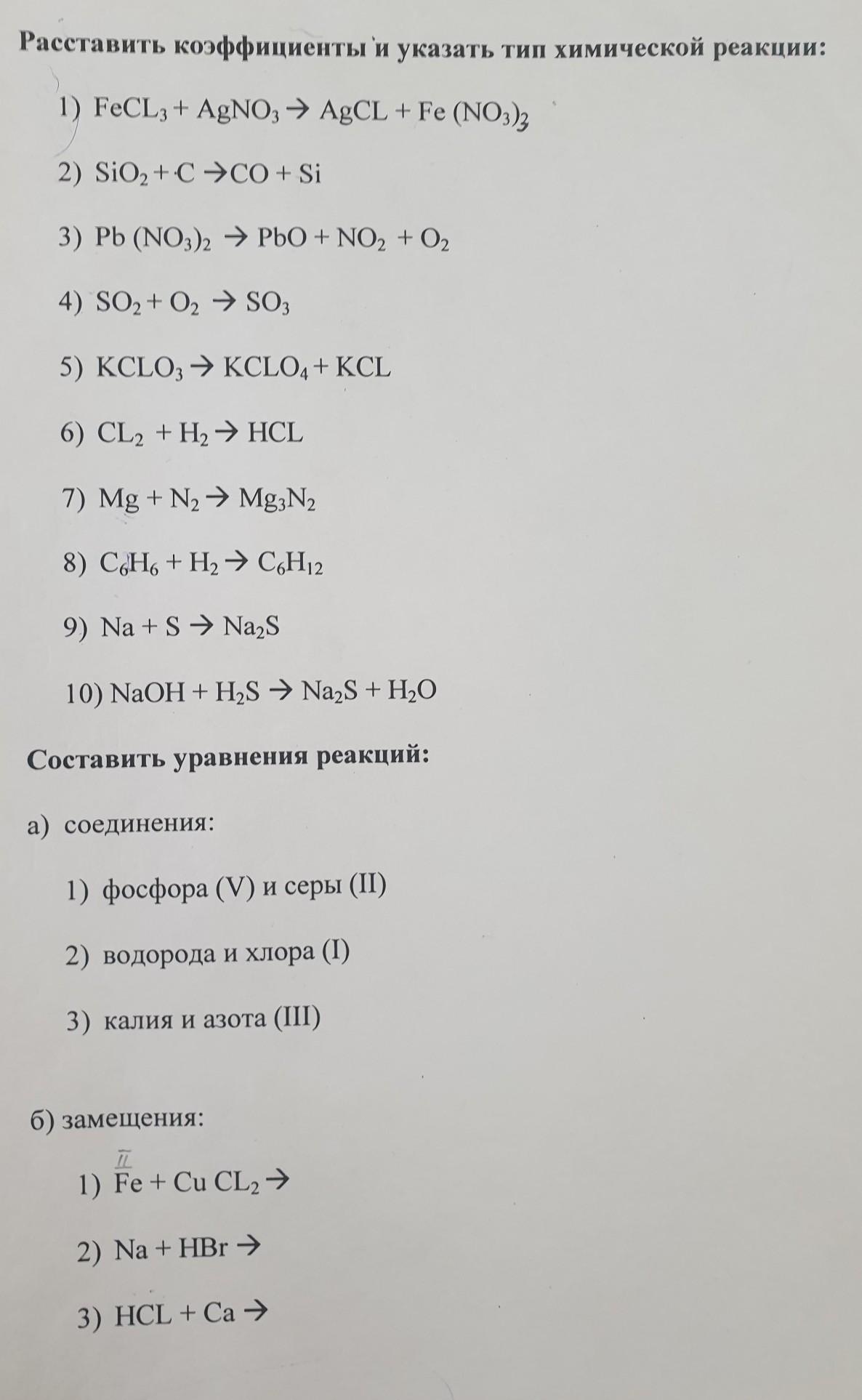 8) C6H6 + 3H2 -> C6H12 (соединение)