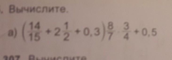 (14/15 + 2 1/2 + 0.3)8/7 * 3/4 + 0.5 = 2 59/70
