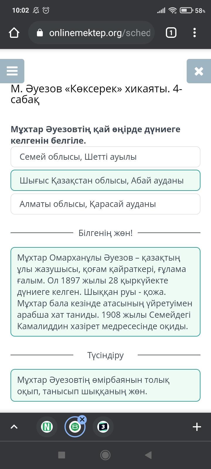 Мұхтар Әуезовтің қай өңірде дүниеге келгенін белгіле.