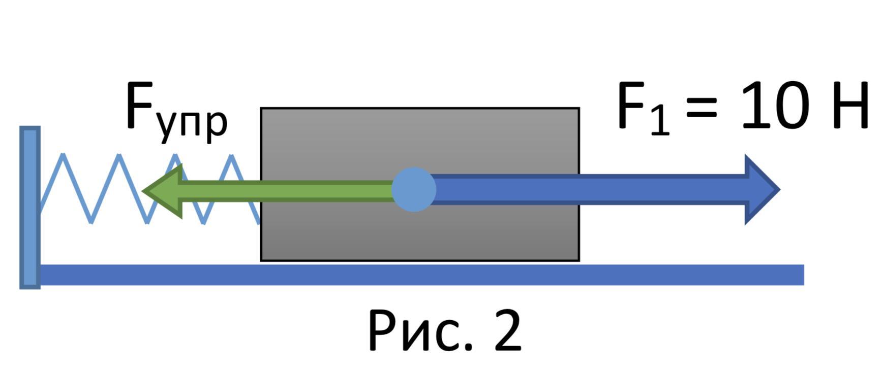 Чему должна быть равна сила упругости (см. рис 2), чтобы брусок покоился? Коэффициент жёсткости пружины k = 10 Н/м.