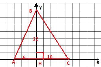Введем прямоугольную систему координат , как показано на чертеже. Тогда координаты А(-6 ;0) , В(0 ;12) С(10 ;0).