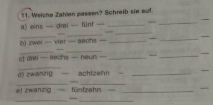 d) zwanzig—achtzehn—sechzehn—vierzehn—zwölf