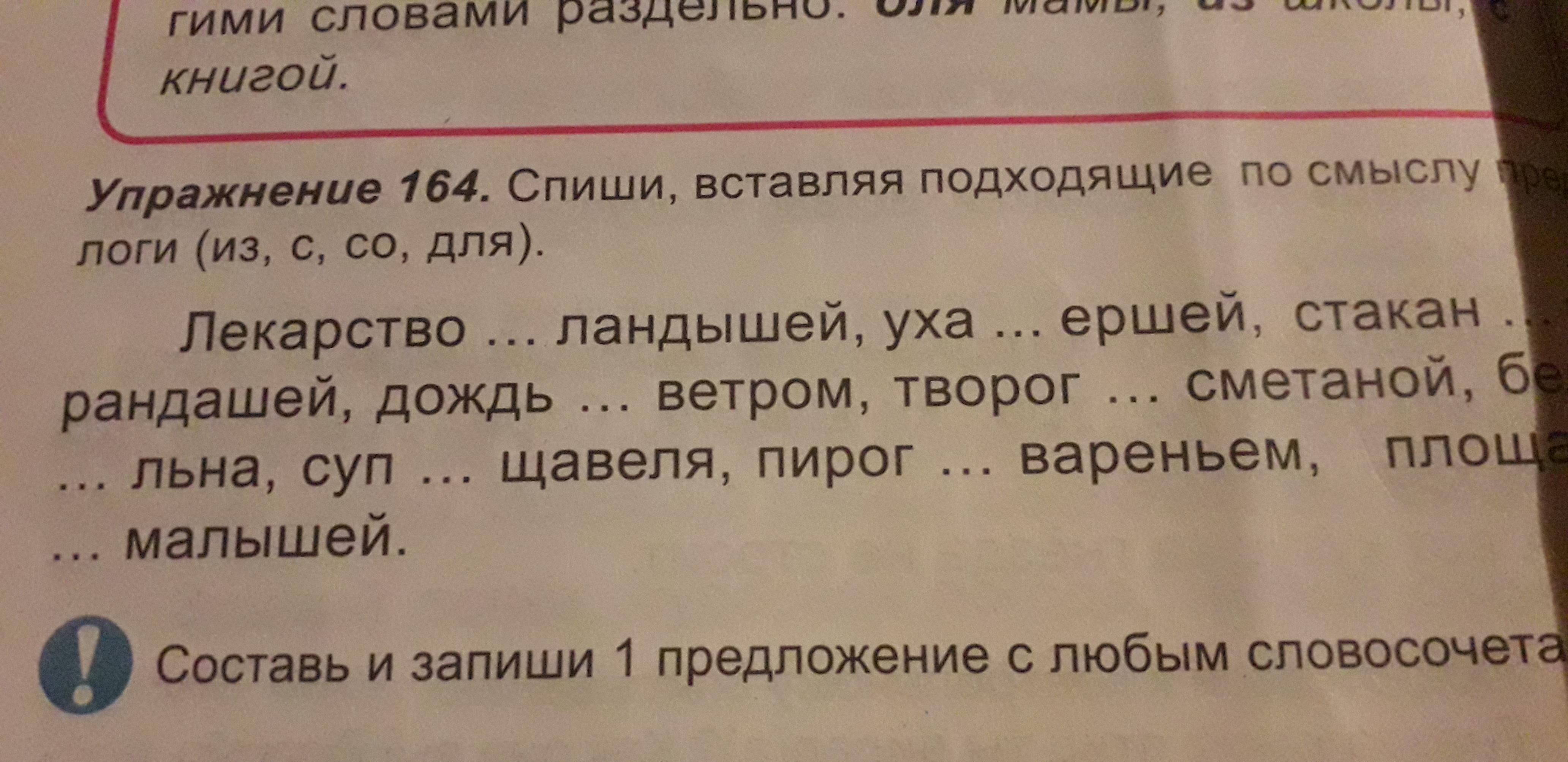 Спиши вставляя подходящие по смыслу предлоги (из, с, со, для )лекарство...ландышей.уха... ершей. Стакан...карандашей.дожьд ....ветром.творог...сметаной.бельё....льна.суп...щавеля.пирог....вареньем.площадка....малышей.