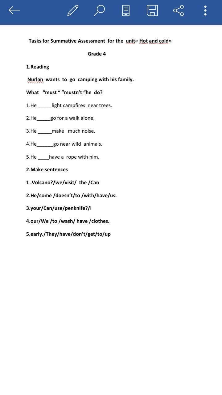 1.can we visit the volcano 2.he doesn’t come with us to 3.can i use your penknife 4 we have to wash our clothes 5they don’t have to get up early