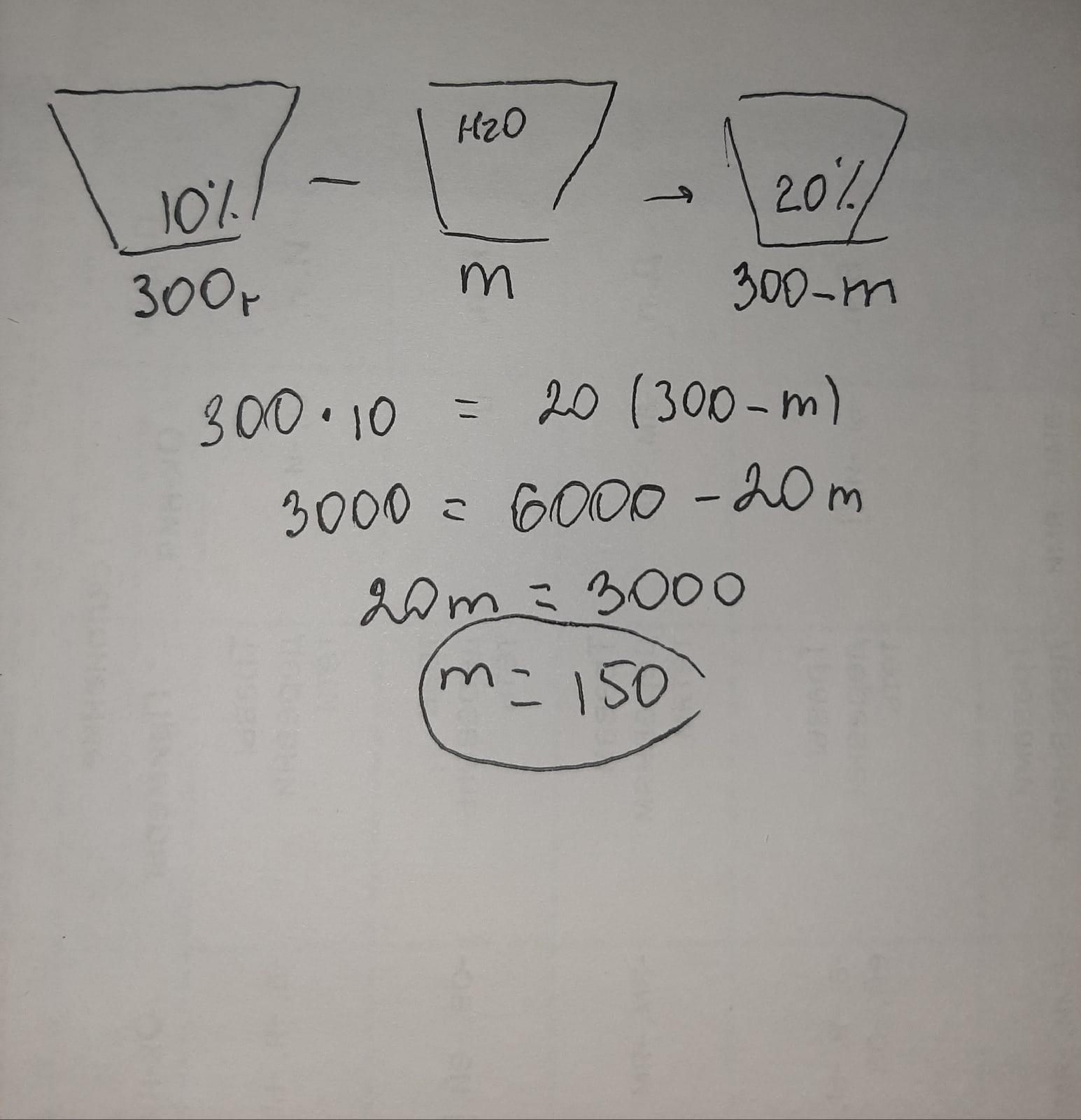 Раствор массой 300 г с массовой долей вещества 10% выпаривали до тех пор, пока массовая доля не увеличилась вдвое. Вычислите массу выпаренной воды.