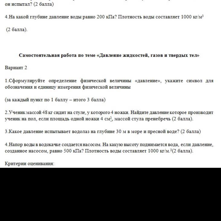 2) Плотность Пресной воды ρ = 1000кг/м³