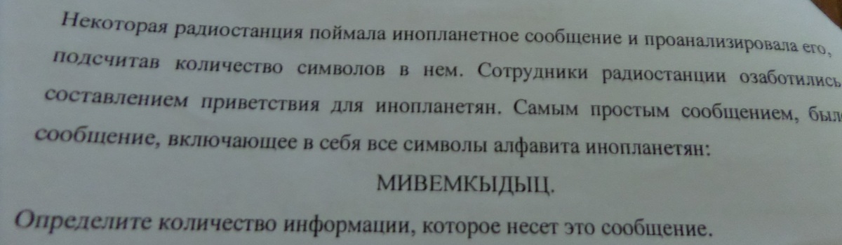 тогда вес сообщения I считаем по формуле I=k*i, где k - количество символов, k=10