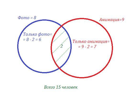 На фестиваль приїхала група з 15 дітей .Із них 8 дітей взяли участь у фотоконкурсі , 9 у конкурсі пісочної анімації . Скільки дітей дітей взяли участь в обох конкурсах ?