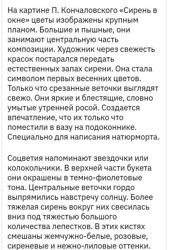 сочинение по картине П. Кончаловского "сирень в корзине" по плану: