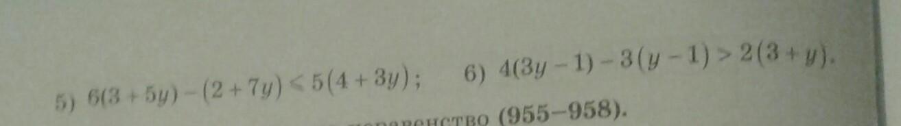 5)6(3+5y)-(2+7y) <= 5(4+3y)