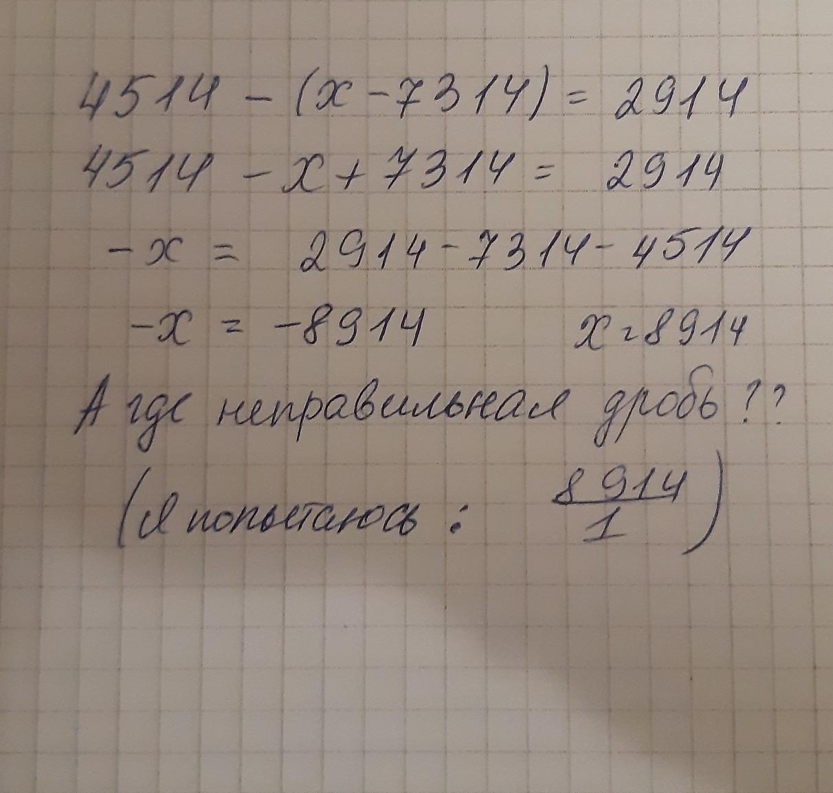 Решите уравнение: 4514−(x−7314)=2914