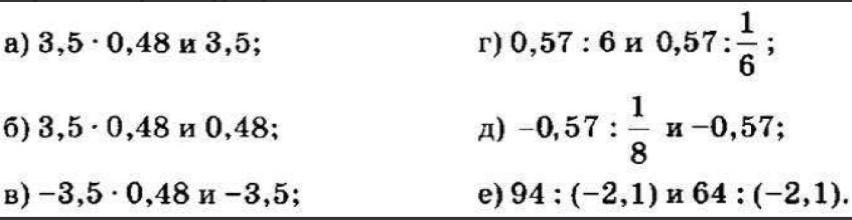 в) -3,5*0,48 и -3,5; Т.к. в произведении в левой части неравенства второй множитель меньше единицы, то результат будет больше. Я имею в виду сравнение двух модулей двух чисел. -1,68>-3,5; так потому, что были отрицательные числа.