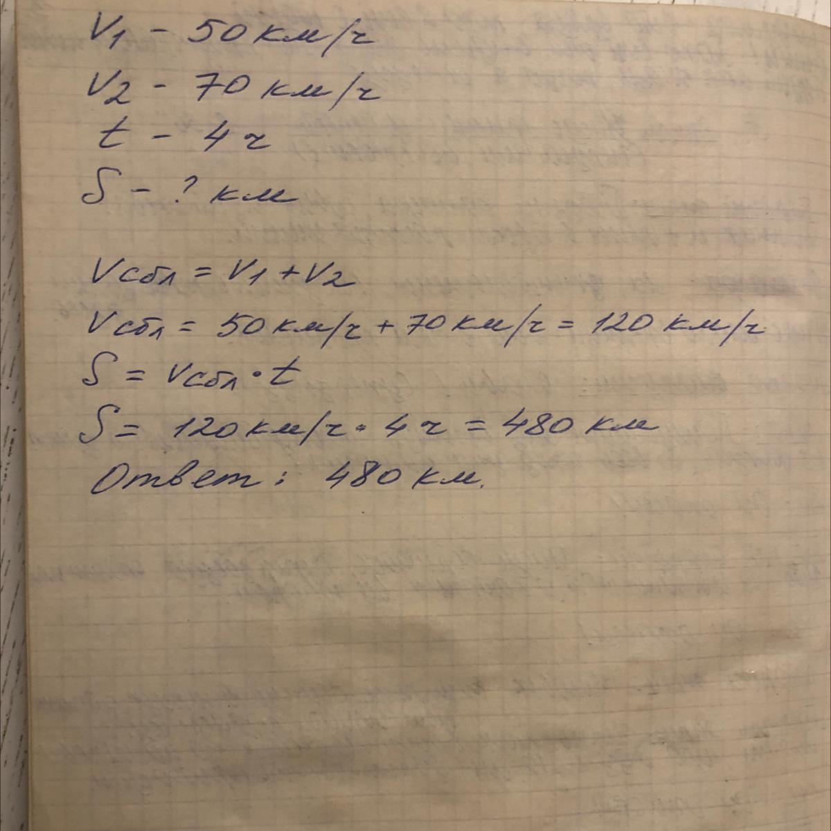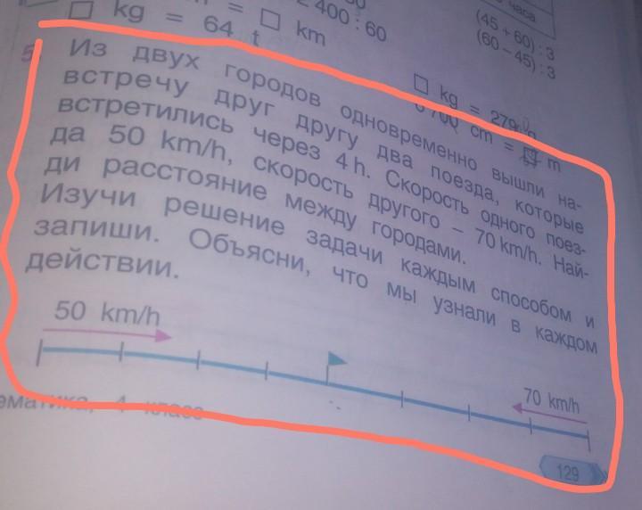 Там внизу начерчен луч,это тоже считается красоты записью,слева 1 поезд,а с права 2 поезд,внизу длинную скобку и вопросительный знак,а сверху t-4 h