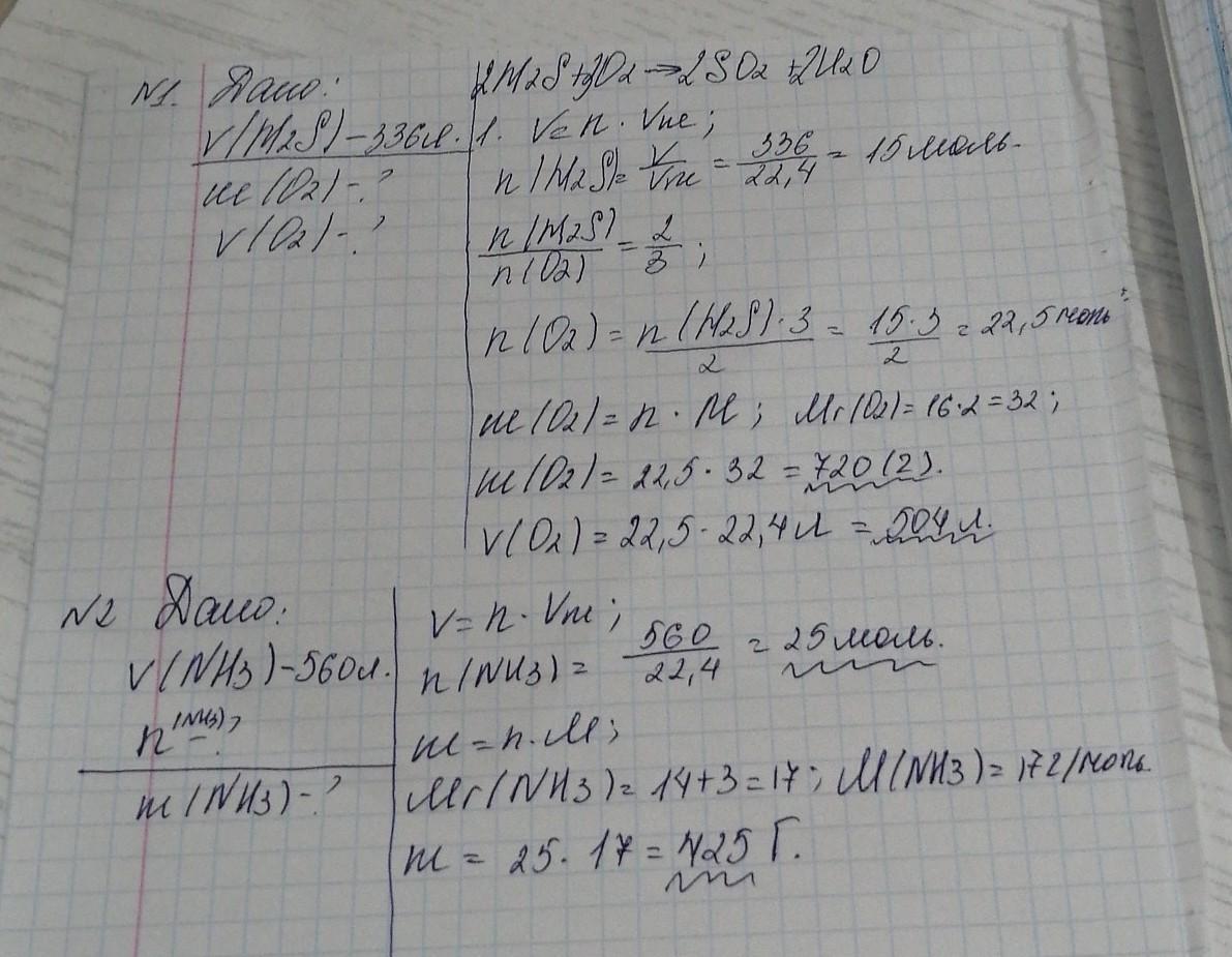 2. какое количество вещества содержится в 560 л аммиака (NH3). определите массу этого аммиака