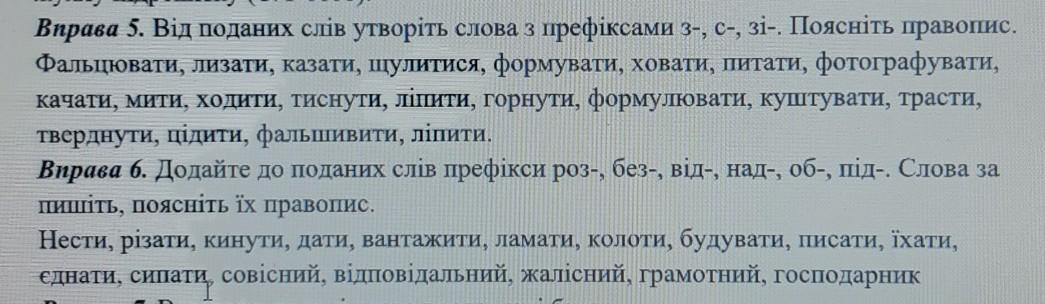 Вправа 5. Зфальцювати,злизати, сказати, зіщулитися, сформувати,сховати, спитати, сфотографувати, скачати, змити, сходити, стиснути, зліпити, згорнути, сформулювати, скуштувати, стрясти, зтверднути, сцідити, сфальшивити, зліпити